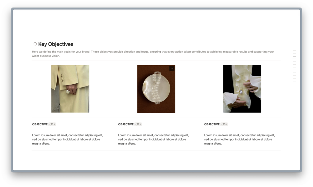 A functional and aesthetic Notion template designed for strategists and social media managers who want to create professional, shareable social strategy documents for clients.